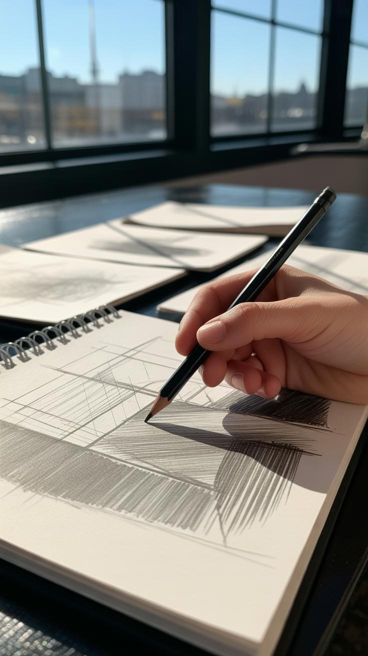Try pairing techniques. A building’s edge can be defined with a heavy line, while windows might be softly shaded or drawn with thinner strokes. This layering shapes your viewer’s understanding without spelling everything out. I sometimes wonder if it’s the smallest shifts in line or shadow that make a drawing convincing—or maybe it’s just the viewer filling in the gaps. Still, practicing these fundamentals makes a noticeable difference in how you communicate your ideas.