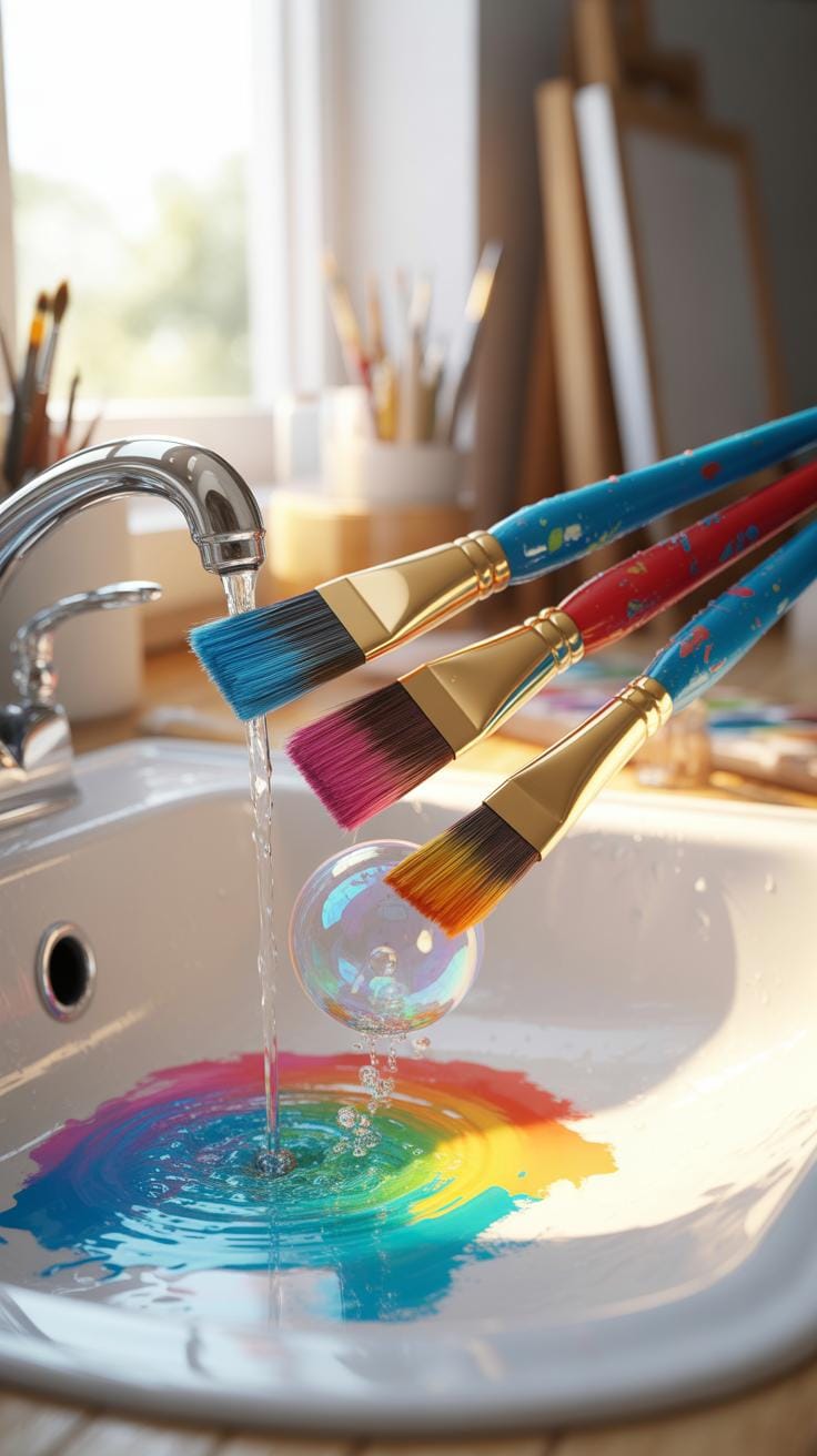 When dealing with oils, things are a bit more involved. You’ll need a solvent like turpentine or mineral spirits first to break down the paint. Dab the brush in the solvent until the paint starts to loosen, then follow up with soap and water to finish off. It might feel like a bit much, but trust me—it really saves your bristles from hardening.