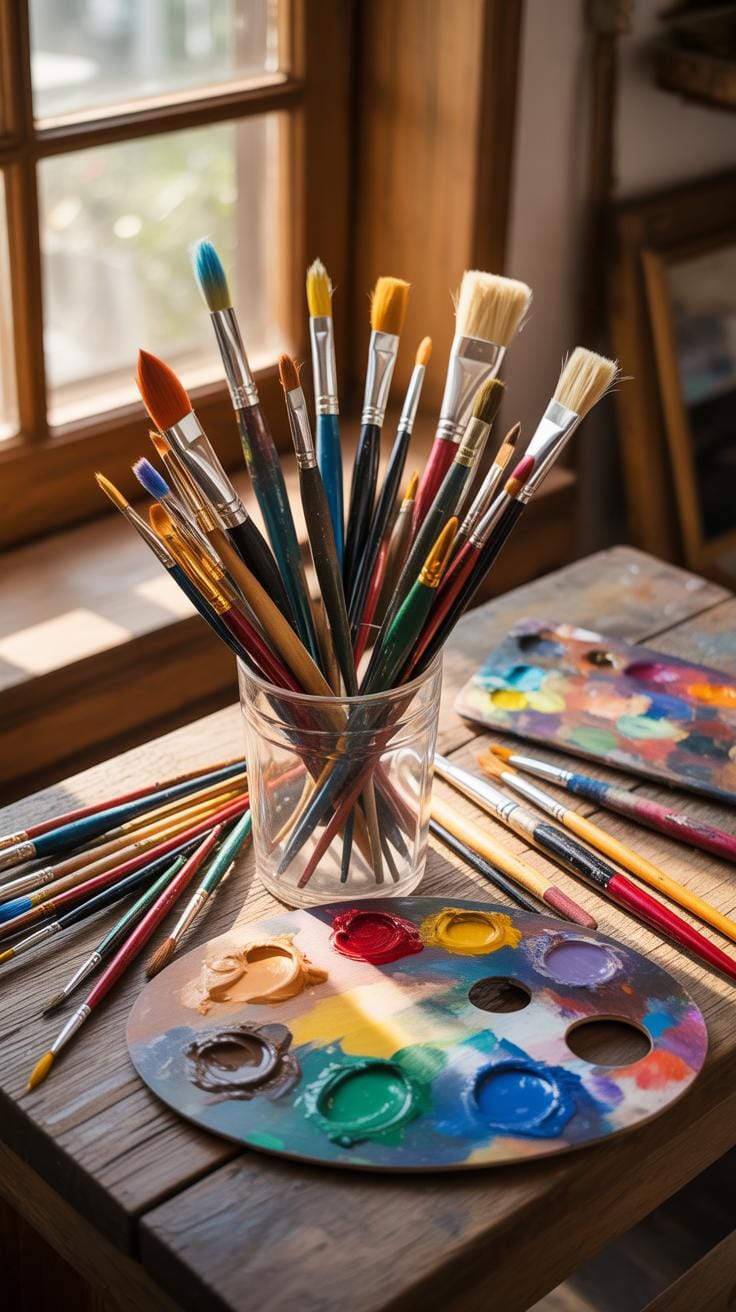 Consider the natural bristle types, too—hog bristles absorb more paint and hold up under heavy strokes, while synthetic brushes are better for fine details and glazing. Mixing brush types can mimic the textures in your subject.