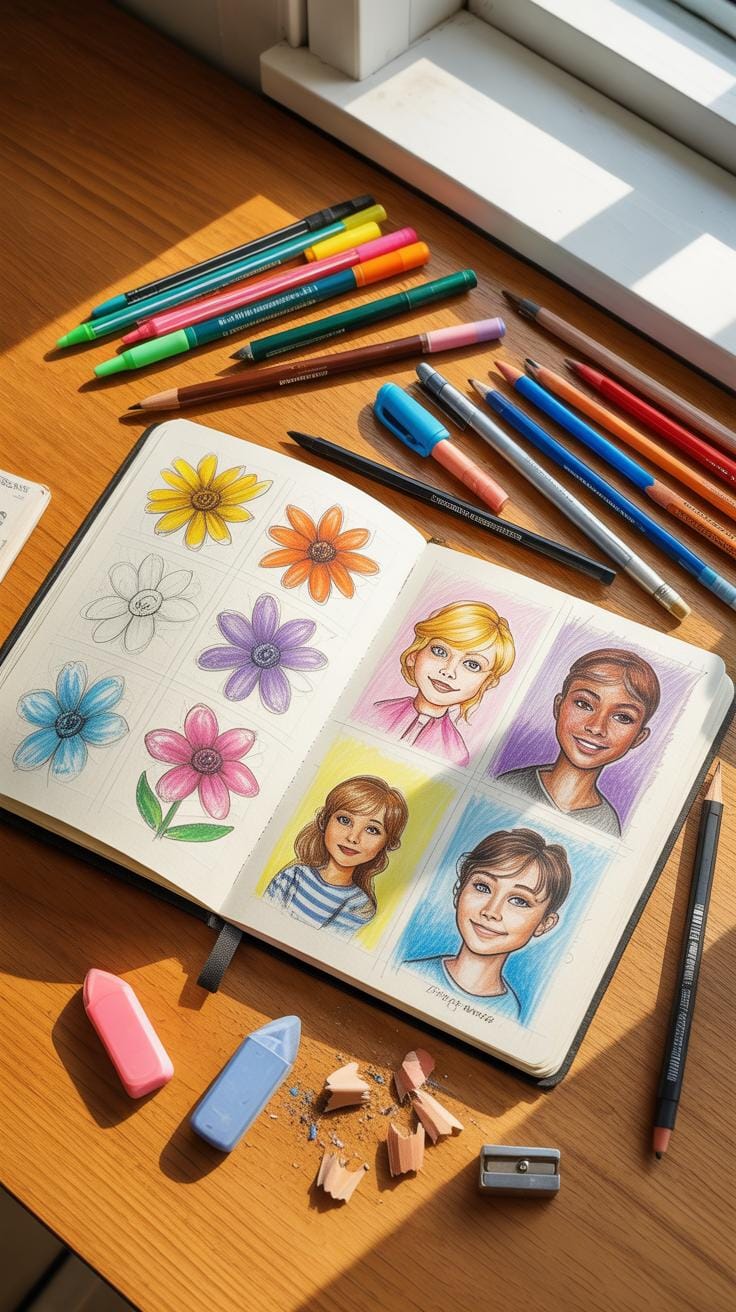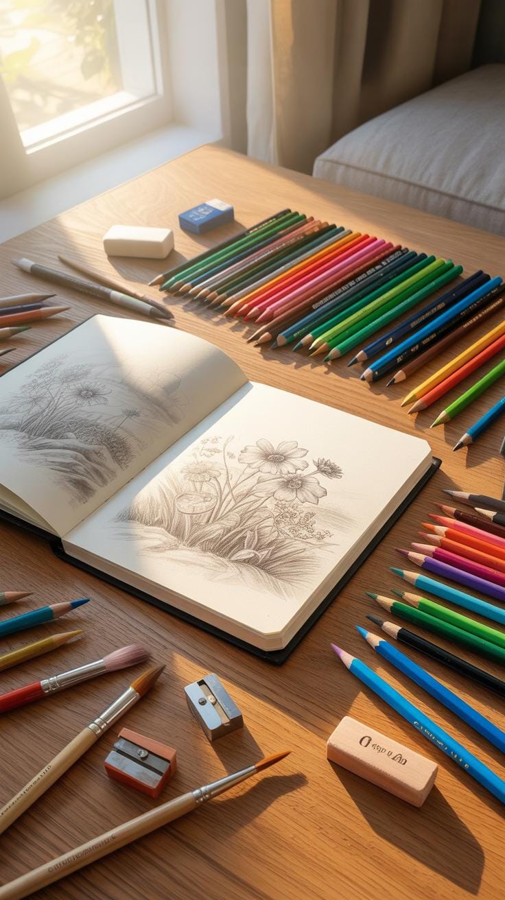 Focus on three main parts: materials, workspace, and mindset. For materials, gather your sketchbooks, pencils, erasers (maybe a blending stump if you like softer shadows), and any markers or pens you might prefer. Keep things simple—too many options can overwhelm.