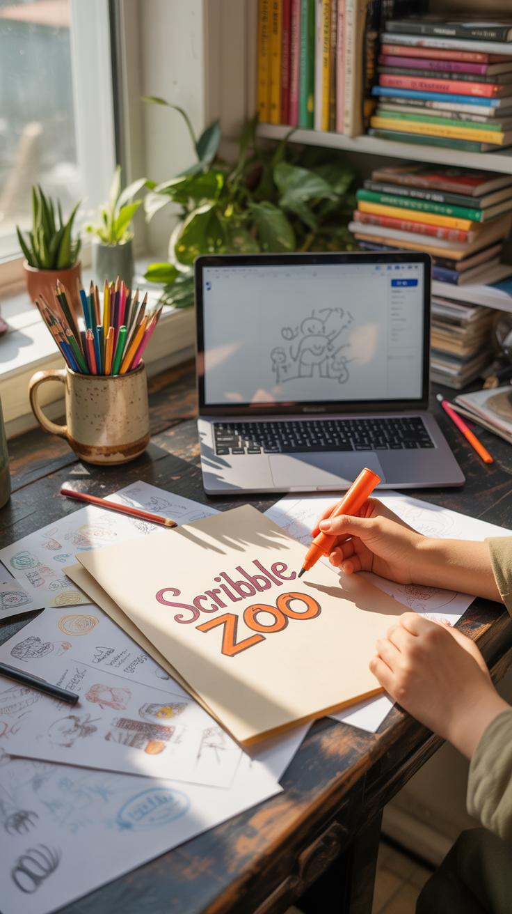 - Character sketches—little faces, animals, or quirky creatures to bring personality.