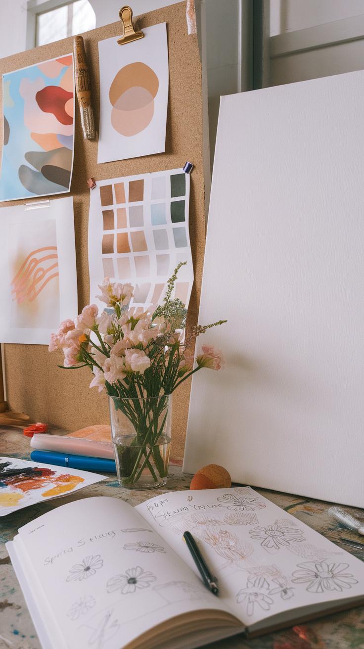 Test different shapes by placing cutouts on your canvas. See which ones stand out and which get lost. Choose forms that feel confident even without color. For example, a large triangle next to a sweeping curve can create an exciting dynamic. Consider the energy each shape brings before you paint.