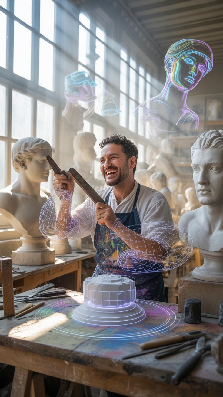 • 3D Modeling: Artists build virtual versions of sculptures to understand how light, shadow, and space interact with cardboard structures.