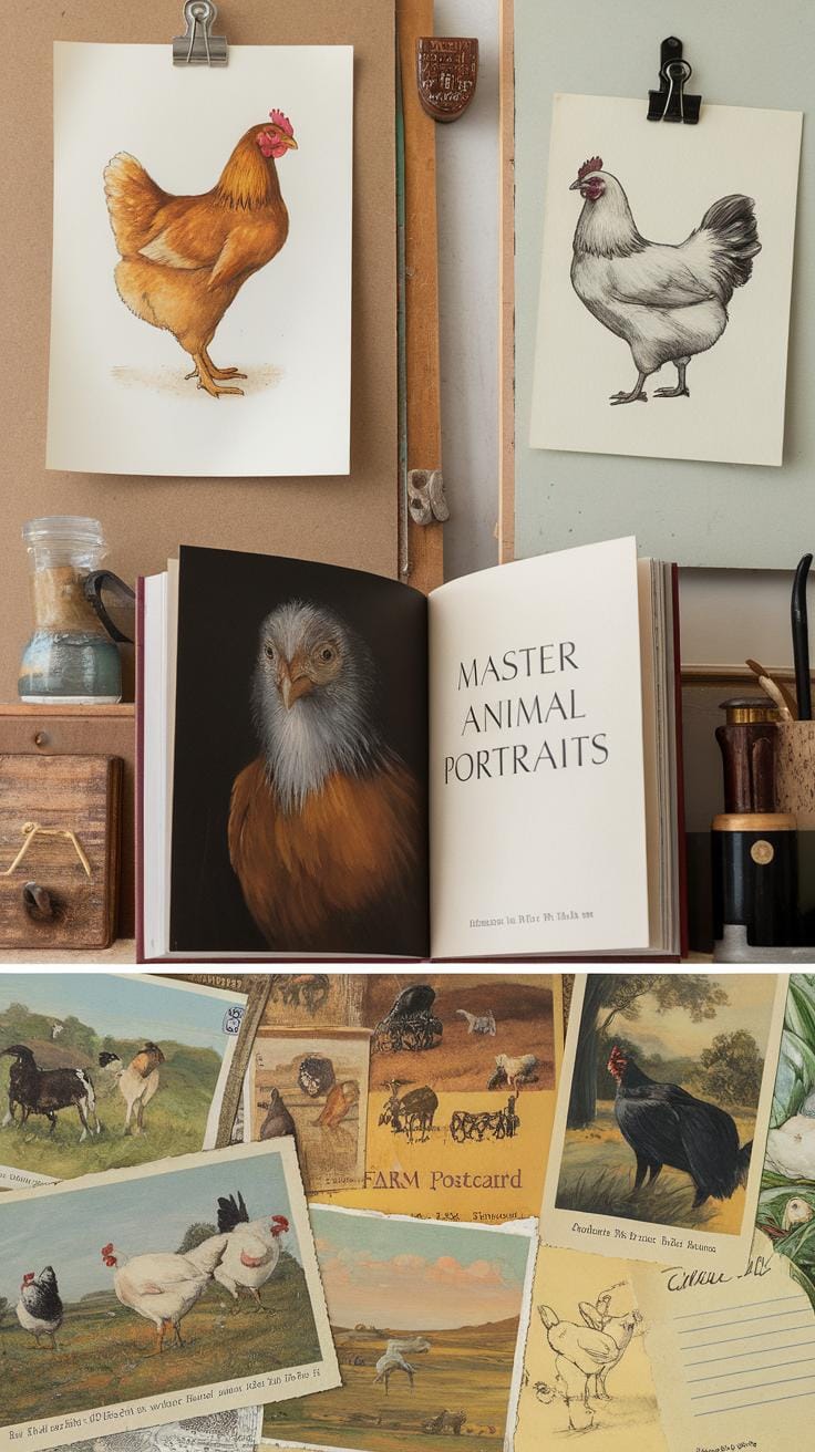 Your surroundings can feed your creativity. Look for old farm equipment, rustic fences, or even chicken feed bags with graphics. These elements add texture and context to your art. Make a list of places and moments you can visit regularly to observe chickens and their environment. Your paintings will benefit from your thoughtful observation.