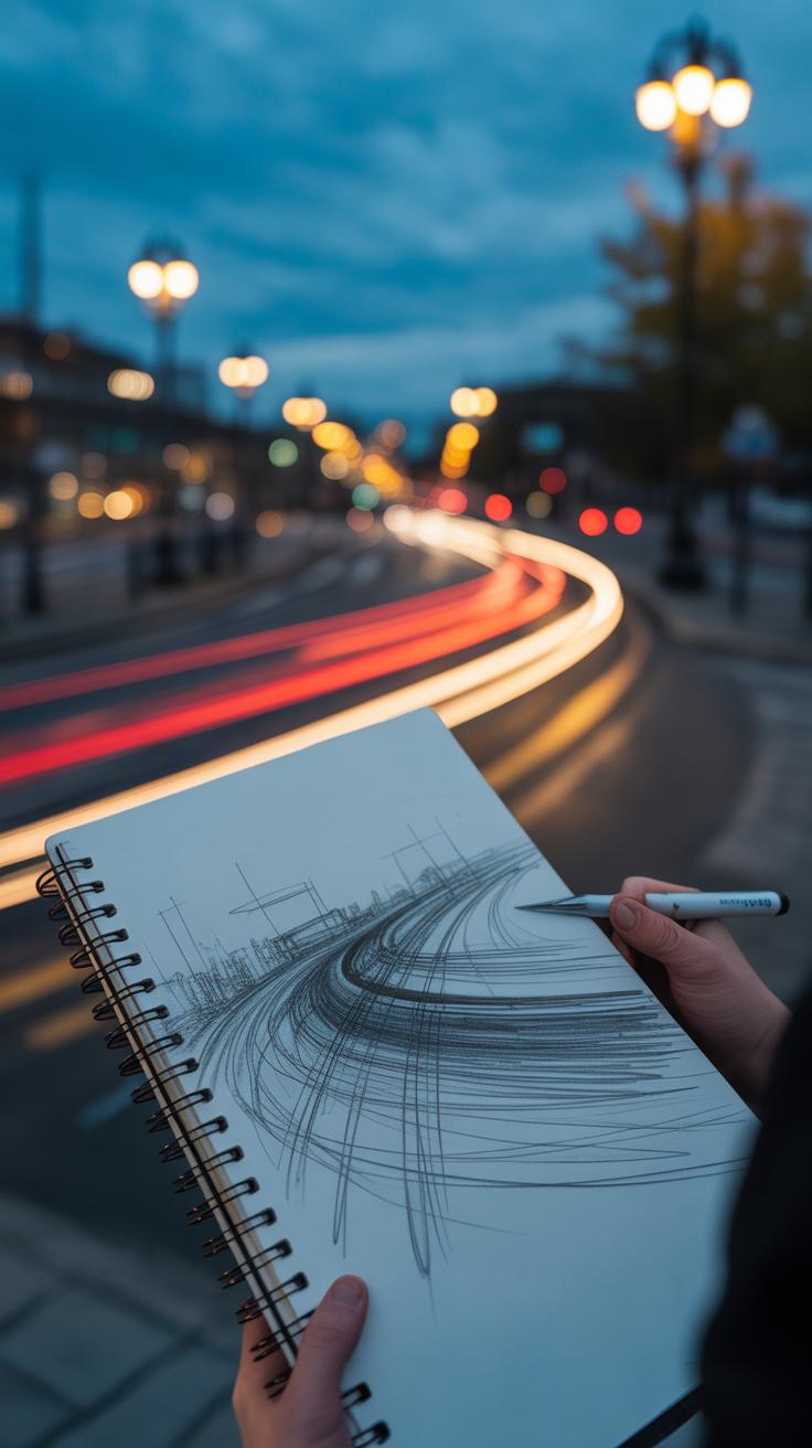 - Sketch scenes at varying times of day, noticing how your hand reacts differently to lighting.