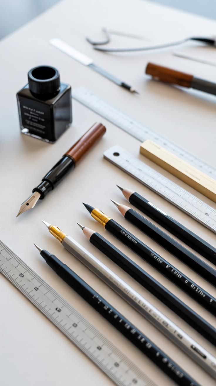 The foundation of city drawing relies on a careful combination of mechanical pencils for precise architectural details and various graphite grades to create depth. Softer pencils are ideal for producing rich, dark shadows typical of urban canyons, while harder leads deliver the sharp lines essential for conveying structural elements clearly.