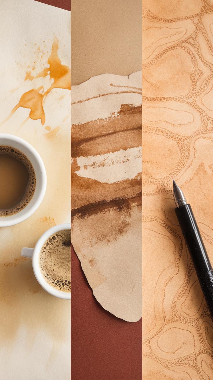 Remember coffee stains are less bright than watercolor, so using watercolor on top can add vibrance. Thin your coffee paint for lighter effects and thicker for darker washes. Paper quality affects how these blends behave, so test on scrap sheets first.