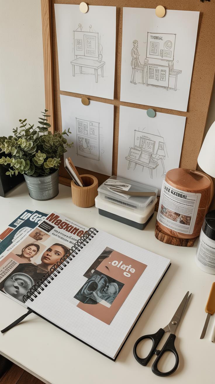 Begin by thinking about what you want to express. Don’t overthink it; just start collecting images or textures that catch your eye. Lay them out loosely before you glue anything down. This part is like a puzzle—see how elements interact visually or conceptually.