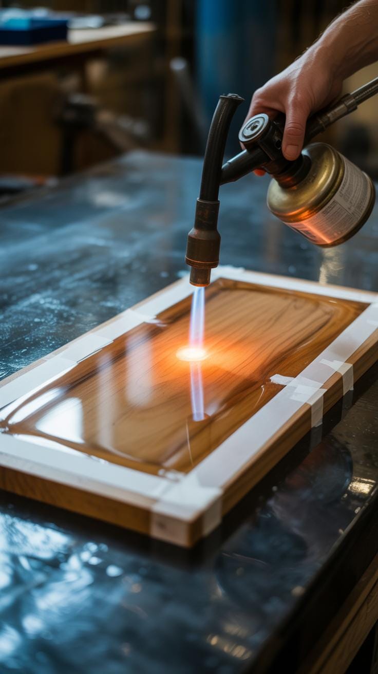 If bubbles still form, grabbing a heat source like a small butane torch or even a heat gun briefly passed over the surface usually makes them rise and pop. Be cautious not to hold the heat too close or too long, or the resin can get damaged. Some folks swear by just blowing gently on the resin, but that sometimes moves the resin more than you want. Another trick I found is using toothpicks or needles to carefully pierce stubborn bubbles after pouring, though this takes patience.