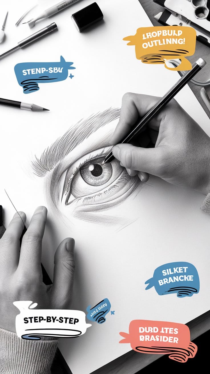 Embarking on a step-by-step drawing tutorial for realistic eye drawing can elevate your artistic skills remarkably. In this comprehensive guide, you’ll learn how to sketch a realistic eye using a graphite pencil, beginning with basic shapes and progressing to detailed shading. The tutorial covers drawing the iris and pupil, creating accurate proportions of the eyelid and eyelash, and capturing reflections in the eyeball. Utilizing both a mechanical pencil and a soft pencil for finer details ensures you blend shadow and light effectively. With a reference photo and careful attention to the eye socket, you can mimic the subtle gradations around the edge of the iris. Follow this eye drawing tutorial to refine your drawing process and produce stunning, hyperrealistic artwork. Enhance your art skills today.