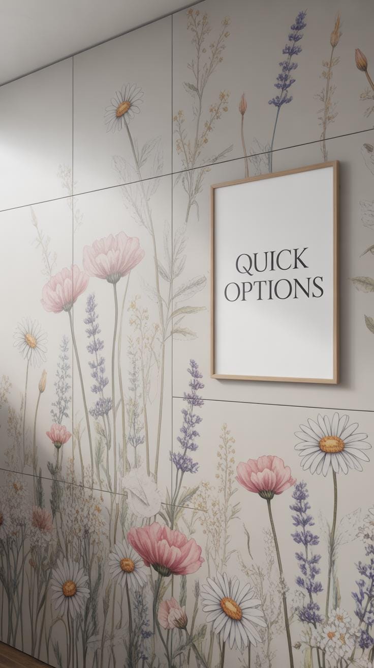 Not everyone is comfortable with a paintbrush or ready to commit to a permanent flower mural. If that sounds like you, there are other ways to bring floral charm to your walls without painting. Wallpaper and decals can create dramatic effects, and fabric panels offer a flexible, artistic vibe that might suit your style better.
