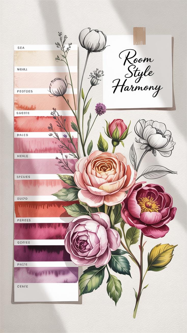 I once picked wild poppies for my hallway mural, thinking they’d be playful, but they ended up feeling a bit too casual for the space. So matching flower style and meaning to the room’s vibe does matter.