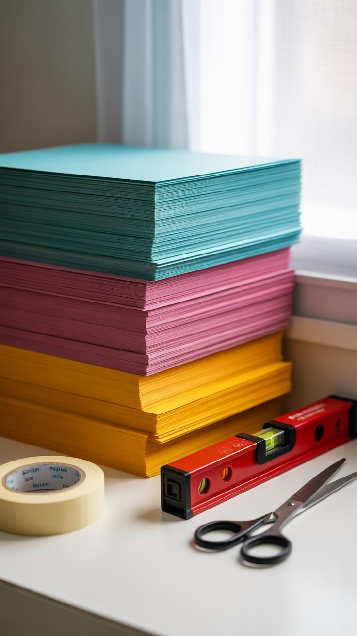Next, gather all your frames. Lay them out on the floor in roughly the order you want. Check each one for sturdy hooks or hanging hardware. You might find some need extra nails, wire, or mounting strips. Tools you’ll want handy include a tape measure, level, pencil, a hammer or drill, and painter’s tape. Tape is surprisingly useful to attach your size template or mark spots without damaging the wall.