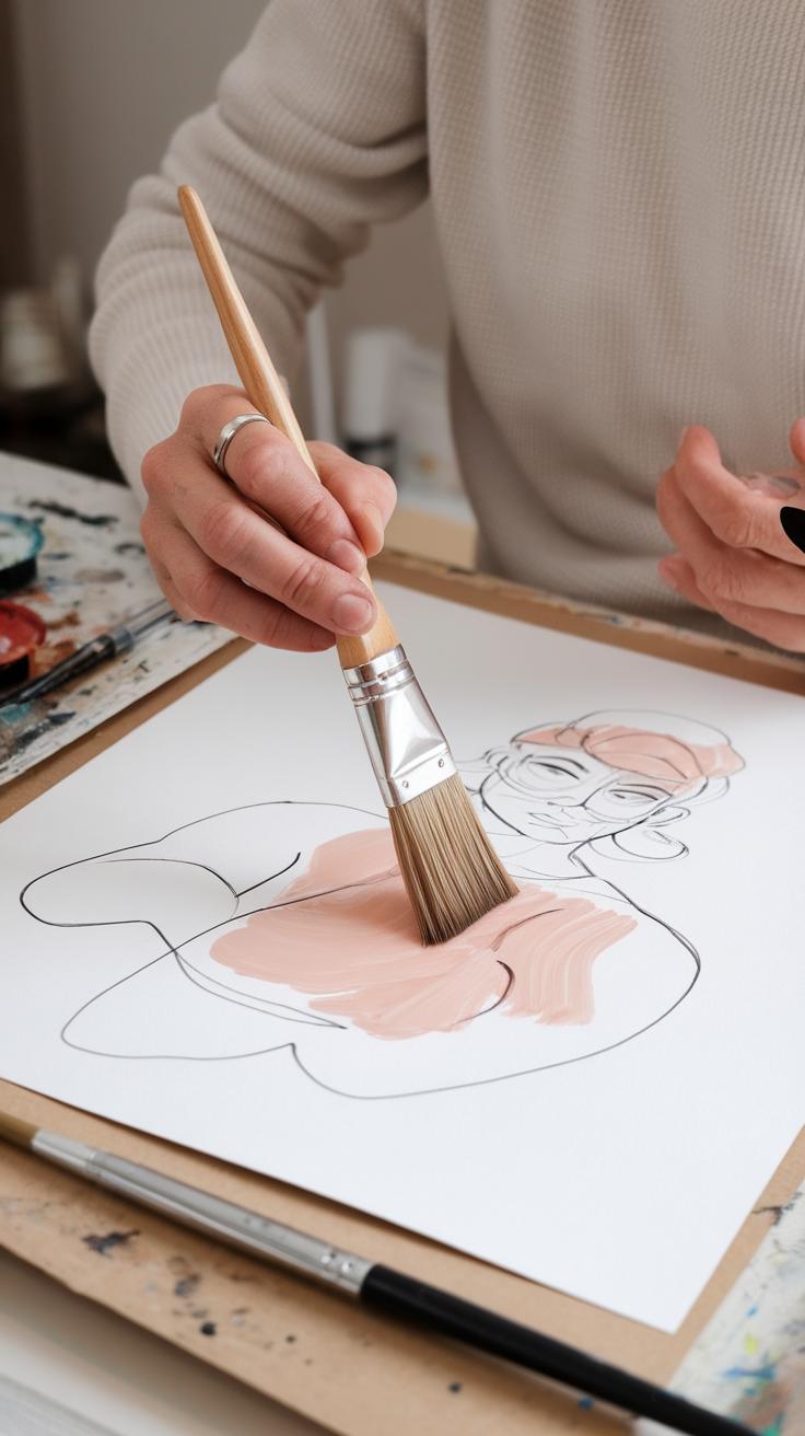 Brush choice matters a lot for character detail and broad shapes. Round brushes with fine points work well for facial features and small details. Flat brushes are great for filling larger areas evenly and creating bold backgrounds. Synthetic brushes often hold their shape and last longer, but natural hair brushes offer softness that can add texture.