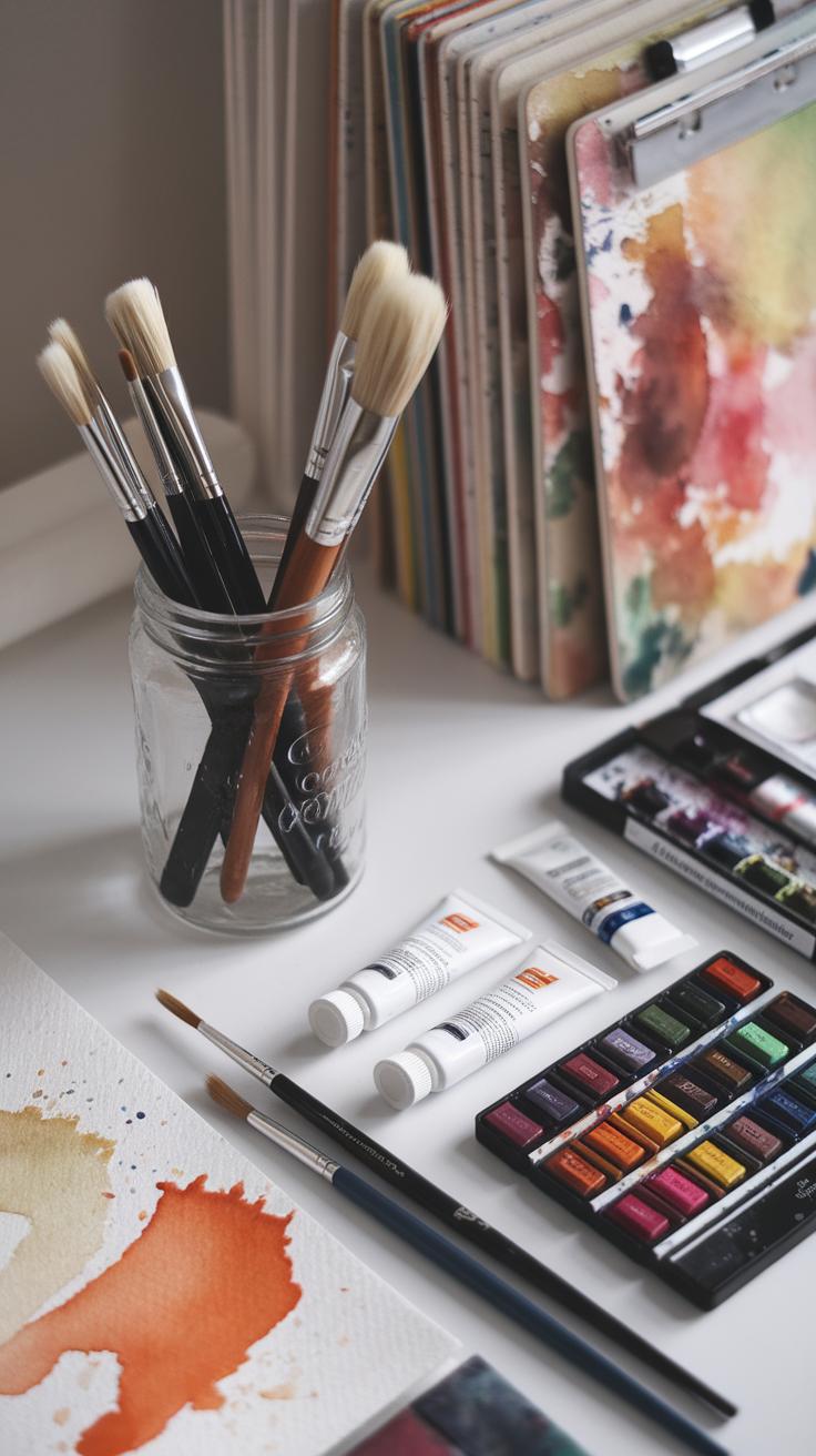 Choosing the right tools can change how your gouache paintings turn out. The brushes you use affect the texture and detail of your abstract mixed media work. You can use round brushes of various sizes for controlled lines or flat brushes to cover larger areas quickly. Synthetic brushes usually hold their shape longer when working with thick gouache. For creative effects, try sponges to dab paint or palette knives to scrape and layer colors in unexpected ways.