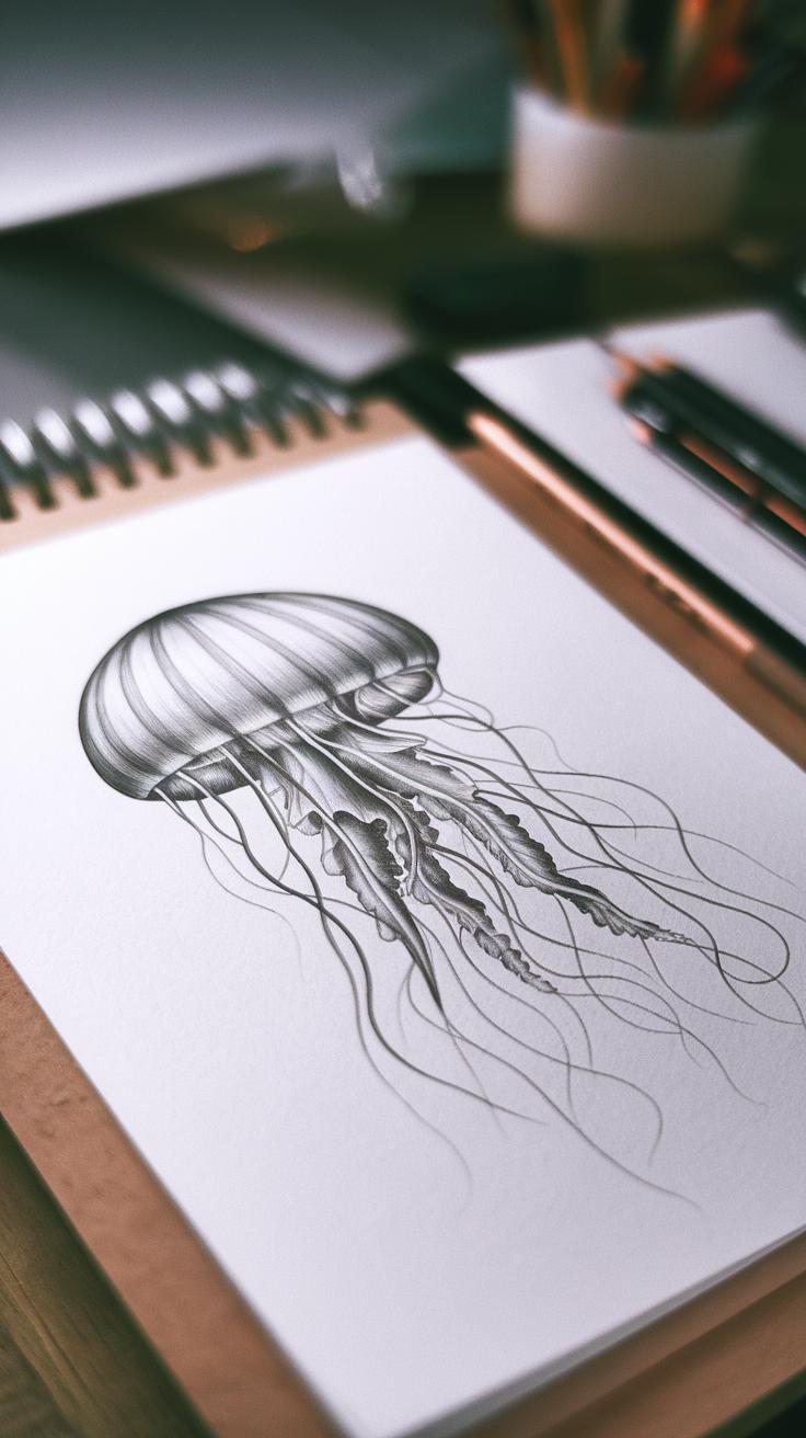 Choosing the right paper affects your ability to show the jellyfish’s subtle textures. Smooth sketch pads support clean lines, while slightly textured paper allows better control for shading and blending. A medium-weight paper, around 80-100lb, balances durability with ease of use.