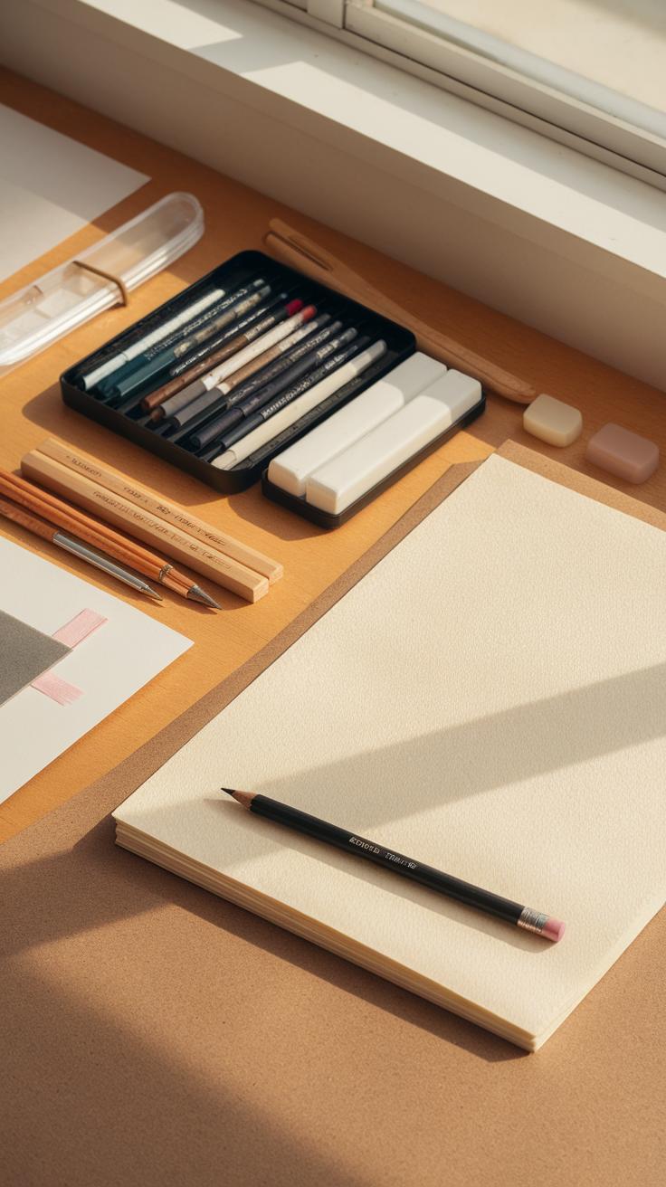 Select erasers that aid precision. A kneaded eraser lets you lift graphite gently without damaging the paper. A regular white vinyl eraser works well for stronger corrections. Having both types available will improve your control over light and shadow.