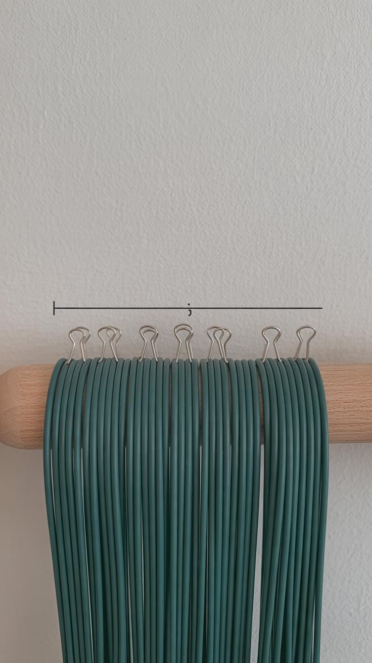Try to keep all your cords evenly spaced on the dowel. It helps keep your work balanced, but don’t stress if they’re not perfect at first. You’ll get a feel for it as you go along. If your dowel is smooth, a light wrap of masking tape at the ends can prevent cords from slipping off while you work.