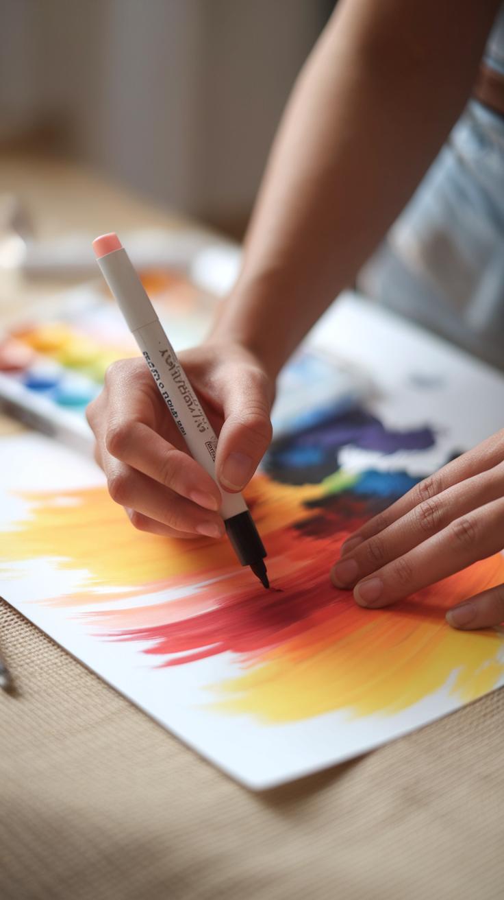 Combining markers with other mediums opens a world of creativity for artists. You can blend colored pencils with markers to achieve rich textures and gradient effects. Start by sketching with pencils, then apply markers for vibrant colors. Use watercolor paint alongside markers to create beautiful wash backgrounds. The watercolor softens the edges, giving your art a dreamy look.
