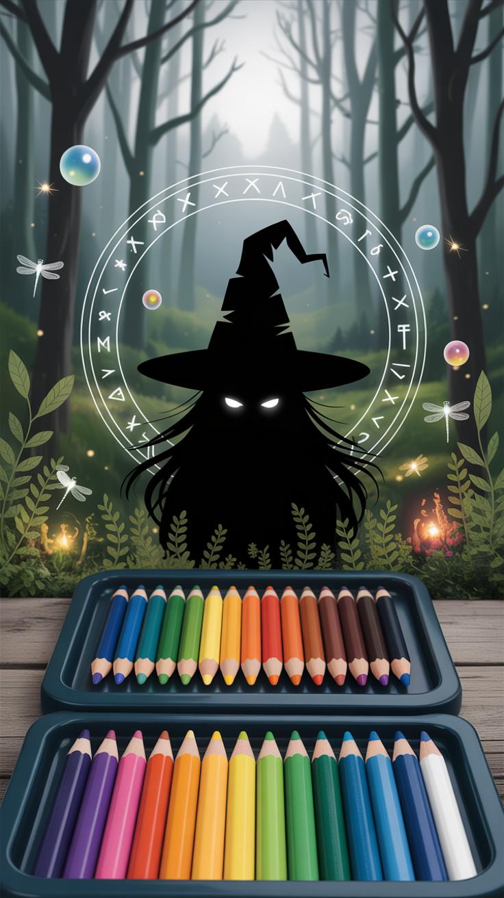 When bringing your Moon Witch to life with color pencils, small magical touches can shift the whole mood. I often find that subtle symbols—like crescent moons or arcane runes—draw the viewer’s eye and hint at unseen powers. You might sketch these symbols lightly first, then layer them softly into the hair or cloak, making them almost whisper rather than shout.