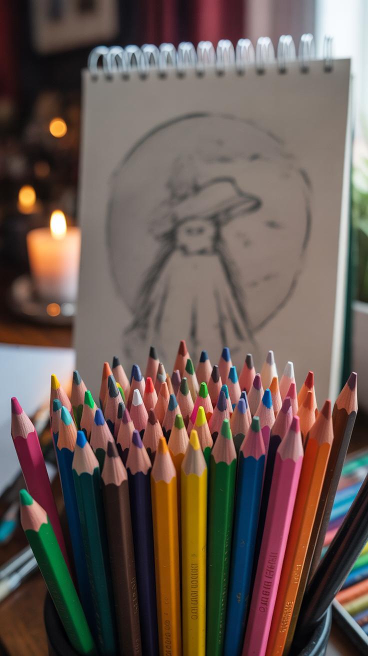 When preparing to create a nighttime color pencil portrait of a Moon Witch, the choice of materials can make or break your work. You want pencils that offer deep, rich pigments to capture the subtle shades of moonlight and the darkness of the night sky. Look for pencils with strong pigmentation and smooth application—these will help you build layers without the colors becoming muddy or dull.
