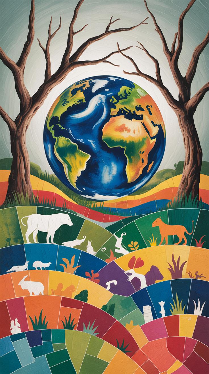 Artists often use these elements not only as backgrounds but as active symbols. Maybe a textured patch of dirt made from actual earth; or thin washes of blue replicating water’s fluidity; or even translucent layers suggesting shifting clouds. These ways of showing nature create something that’s tactile, sometimes rough, sometimes delicate. It’s a reminder that Earth is constantly in motion, alive in ways beyond simple depiction. You might catch yourself wondering, does this art make you feel more connected, or does it expose how much we take for granted? The ambiguity pulls you in.