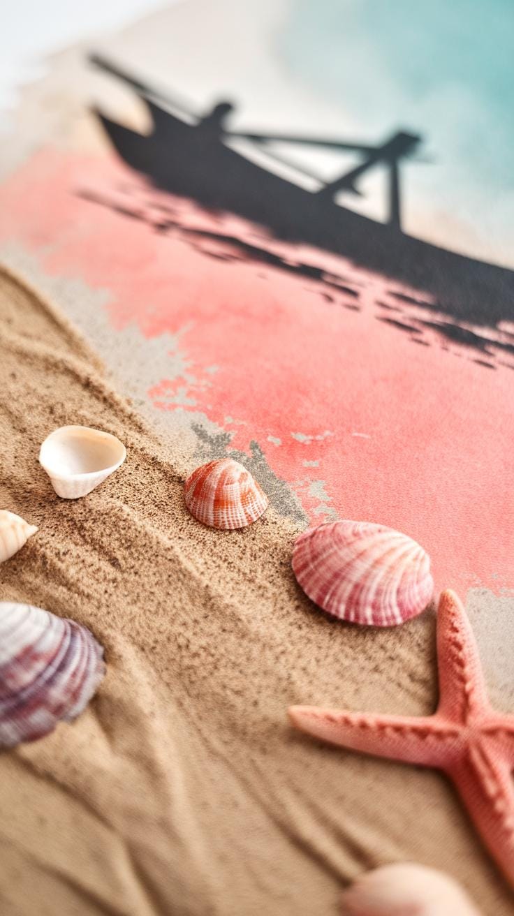 Marine items like shells, driftwood, or fishing boats give your scene personality. Start with simple shapes and build detail step-by-step. Watch how colors interact and how shadows anchor objects in space.