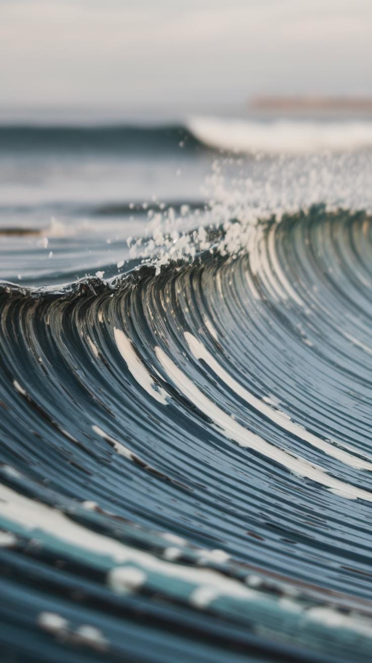 Focus dark pigment on the wave troughs and lighter on the peaks. This contrast creates a sense of depth and light reflection. You can also use transparent layers to show how water changes color where it’s thinner or thicker. This step-by-step build-up makes waves appear three-dimensional and moving.