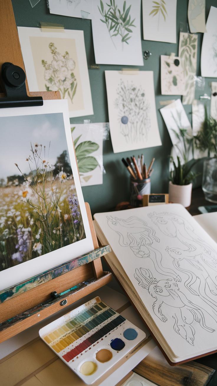Limit clutter to keep your mind clear. Store unused items elsewhere and only have daily essentials on your table. Try changing a small element in your setup occasionally, like a fresh sketchbook or new brush type, to keep surprises in your routine.