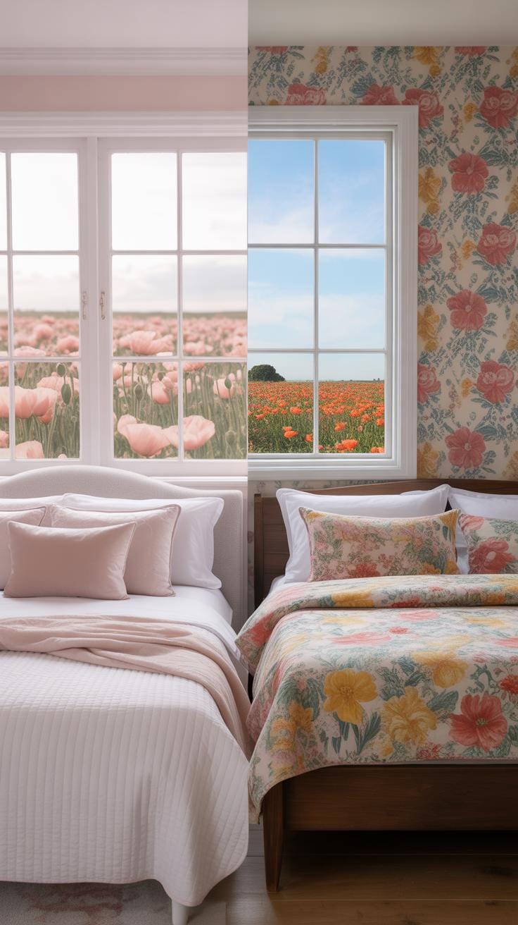 Don’t forget about contrast. Dark poppy backgrounds with lighter flowers often add drama and intimacy, perfect if you want a cozy spot. Meanwhile, light or neutral backgrounds keep the mood airy and open. You might find yourself torn between wanting bold statement walls and something more calming. It’s not always easy to decide.