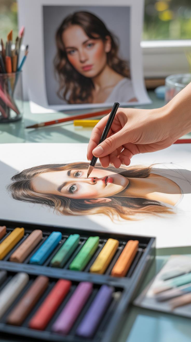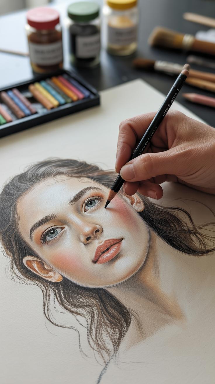 Many artists prefer pastel boards or textured paper like sanded pastel paper for layering. They hold pigment well, so you can build deep shadows and delicate midtones without constant reapplying. That said, surfaces with too much grit may complicate blending skin tones smoothly.