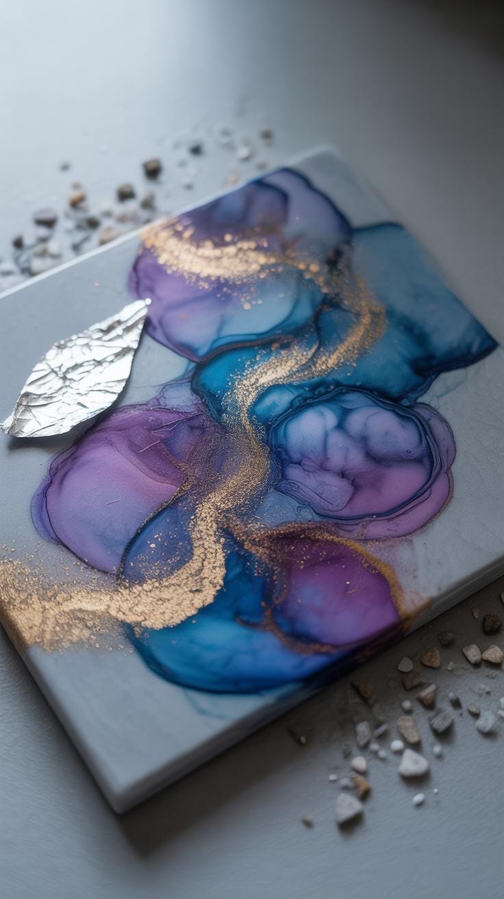 This method builds depth, literally and visually. For example, you might embed small flowers or glitter in one layer, then cover it with a clear resin layer, making those elements appear suspended in space. It feels a bit like painting but with a three-dimensional twist.