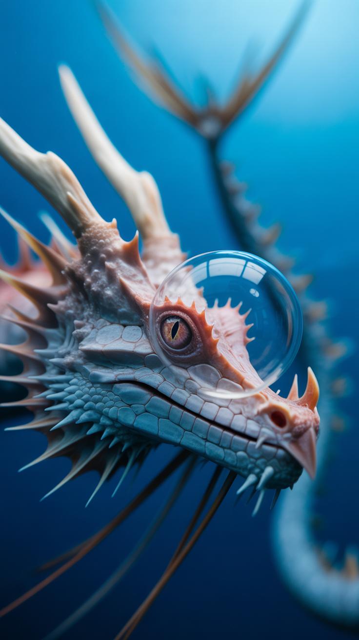 At its core, a sea dragon’s shape is kind of like a thin cylinder with some noticeable extensions that look like little leaves or branches sticking out. You can think of it as a pencil with tiny paper cutouts taped on—that’s sort of how the fins and protrusions look. The body’s texture isn’t smooth like a dolphin’s; it’s rough with little bumps or scales that catch light differently.
