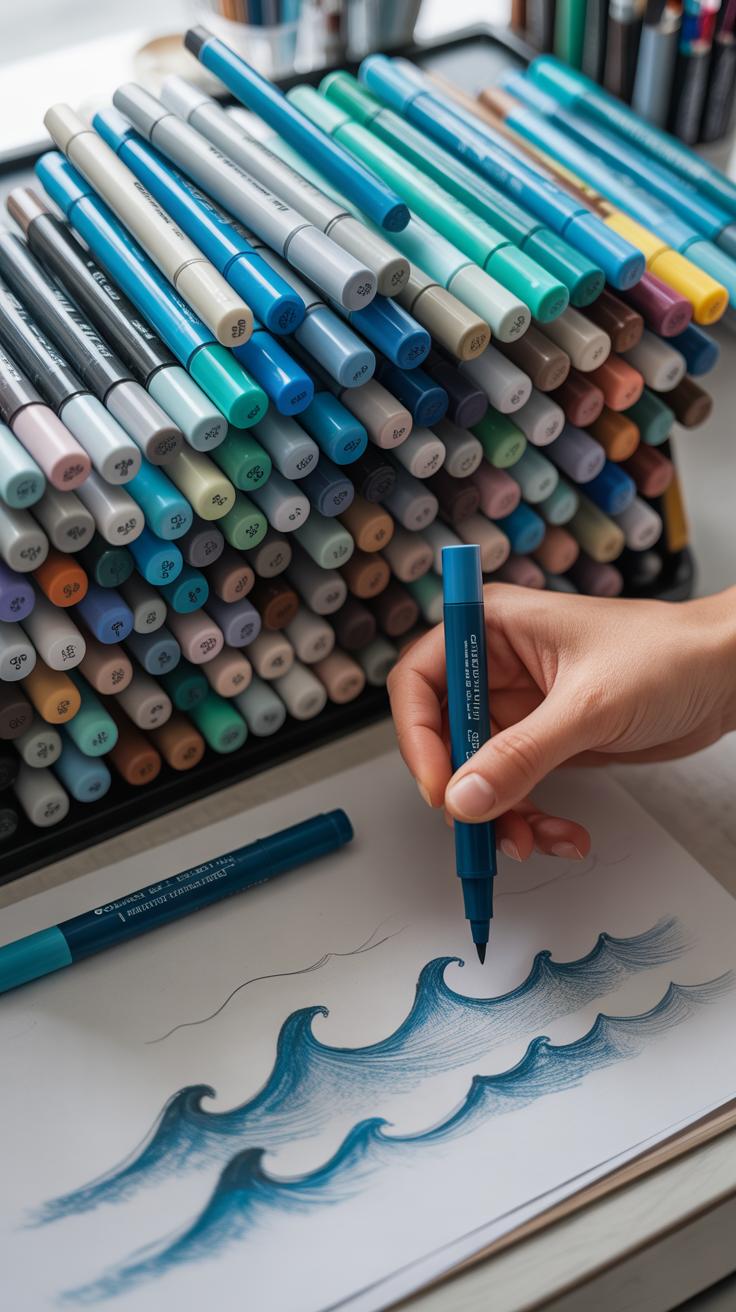 When picking markers for a sea storm drawing, the kind you choose influences the whole feel of your piece. Alcohol-based markers tend to blend more smoothly, giving soft gradients that work well for skies or misty waves. Their quick-drying nature means you can layer colors without waiting—useful when trying to capture fast-moving clouds or rolling spray.