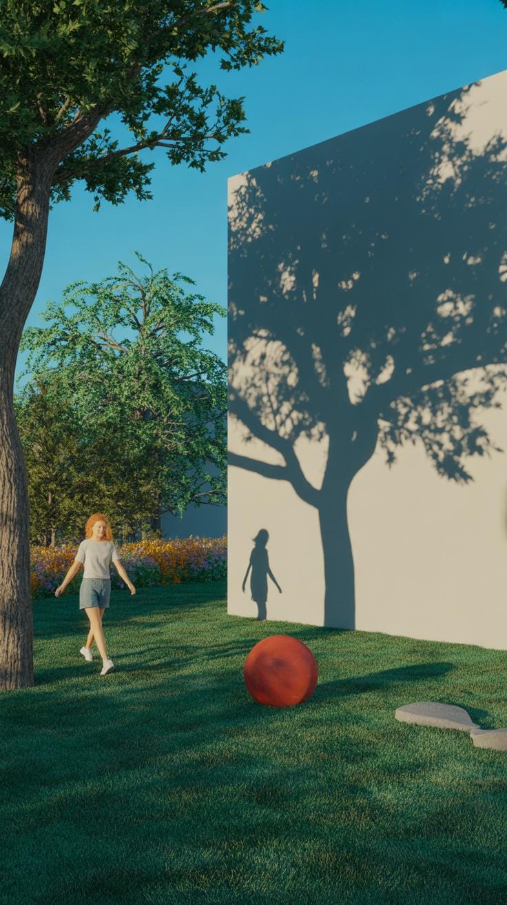 - Cast Shadows – Shadows thrown by an object onto another surface, like a person’s shadow on the ground. They usually have sharper edges closer to the object but can blur depending on the light source.