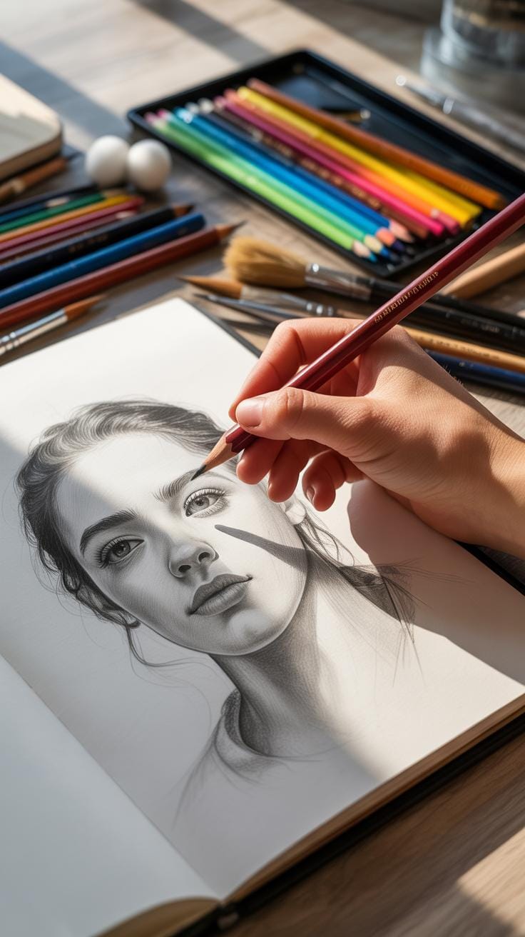 Another step up is working on a shadowed portrait. Here, you pay attention to how light direction affects the face. Shadows aren’t just dark spots; they shape the features, adding depth.