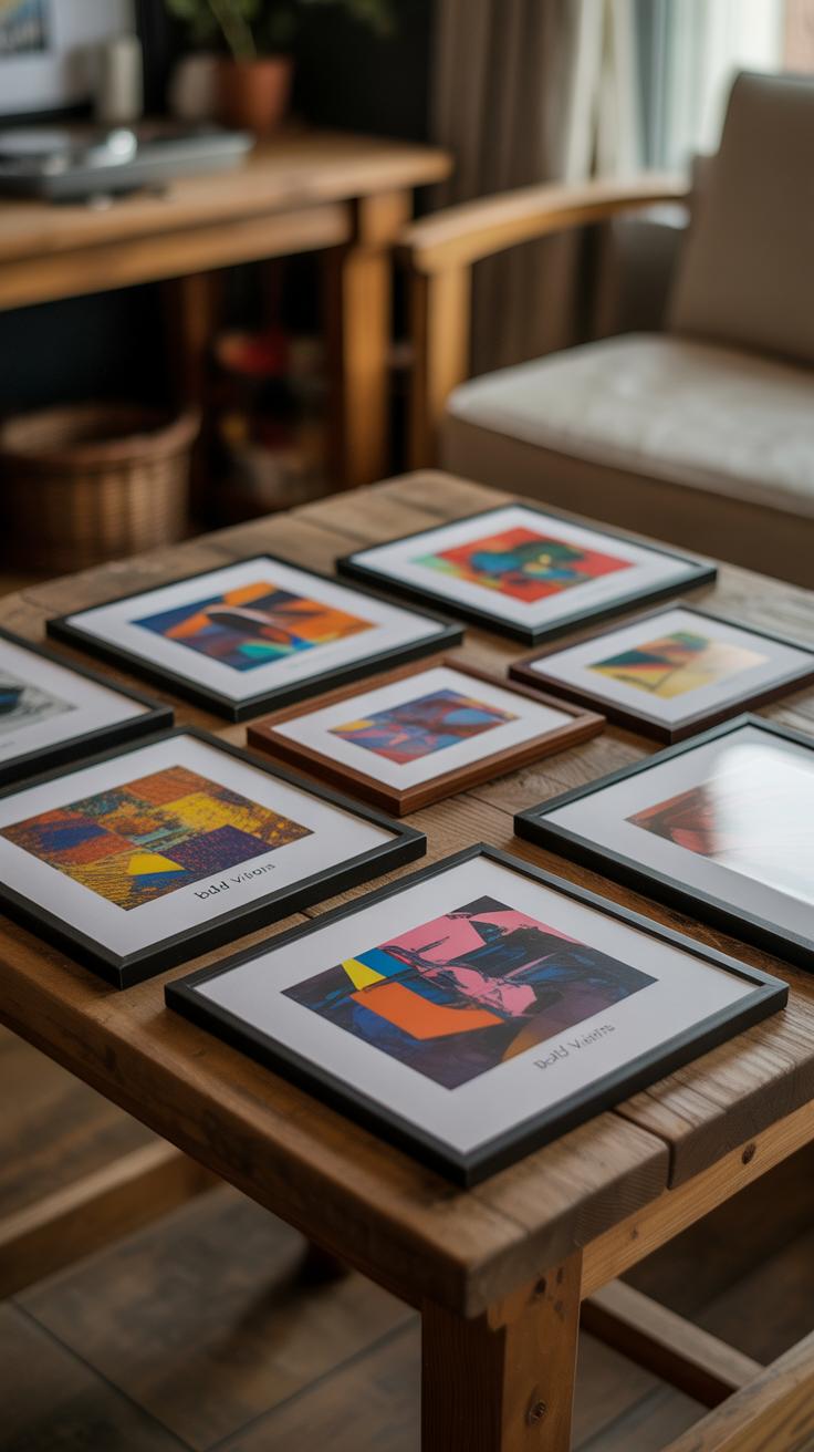 Frame size is surprisingly influential. Big, chunky frames tend to shrink a small wall—they claim too much visual space, drawing attention away from the art itself. Smaller, slimmer frames work better here, letting each piece breathe. Sometimes mixing a few sizes helps, but if you’re going that route, keep the difference subtle to avoid chaos.