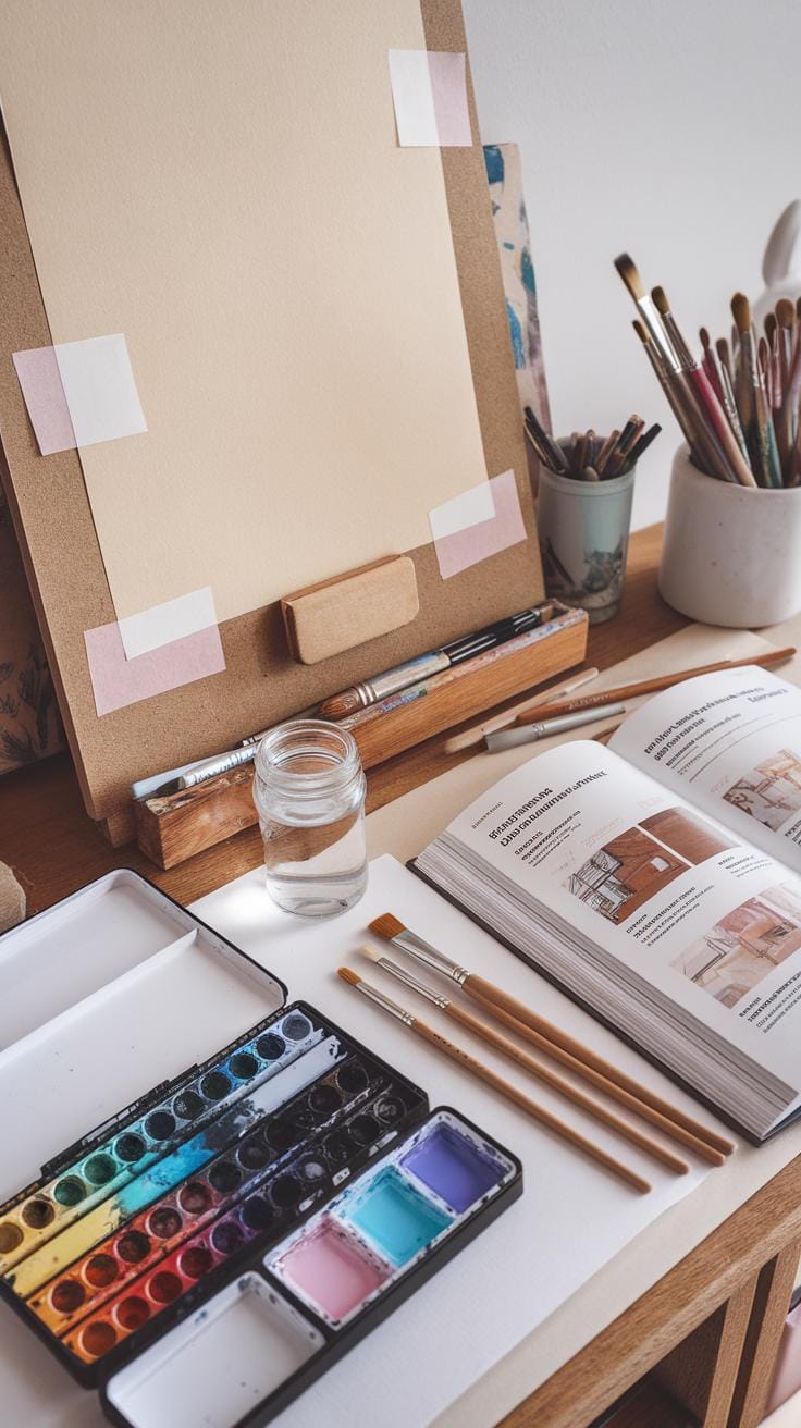 Position your workspace near a window or a daylight lamp to see colors accurately. Arrange tools within easy reach so your focus stays on painting, not on searching.