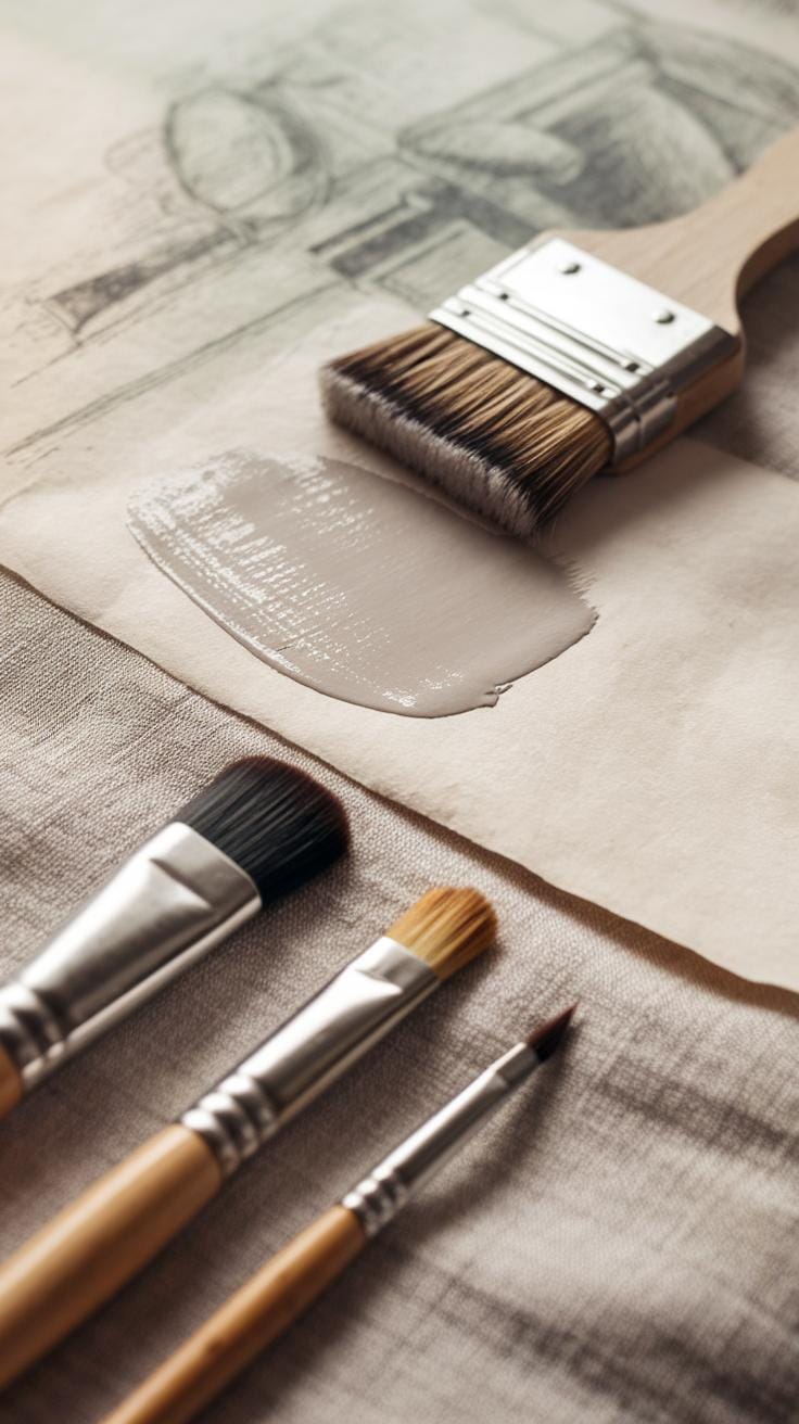 Brush selection affects the textures you can create. Stiff bristle brushes leave rough, broken strokes, while soft synthetic brushes deliver smooth marks. In traditional painting, artists switch brushes to mimic natural surfaces like wood grain or stone.