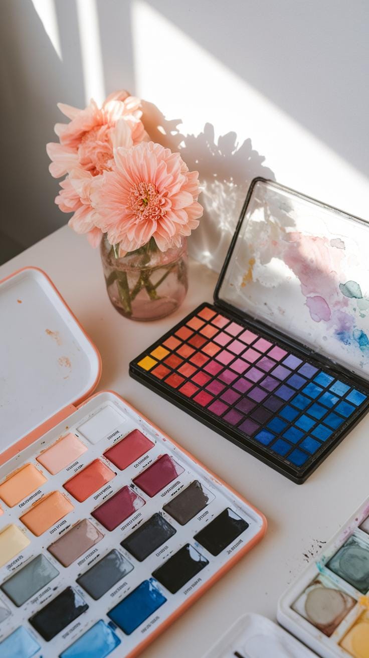 Use heavyweight watercolor paper or mixed media paper around 300 gsm to handle wet layers without warping. A palette with deep wells helps contain mixtures without cross-contamination. Set up a jar for clean water and keep paper towels nearby for controlled drying and brush cleaning.