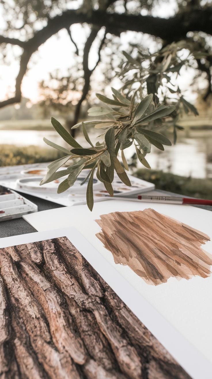 Consider how these colors interact. Use light layers of green mixed with touches of gray or blue to avoid intense brightness. Browns mixed with a bit of warm ochre offer a stable and peaceful feel. Avoid harsh contrasts or overly bright hues, which can disturb the calm mood you want to build.