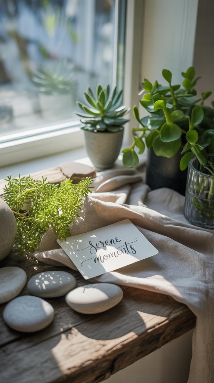 - Place a single large plant or two nearby, but avoid cluttering; too many natural elements can distract or feel chaotic.