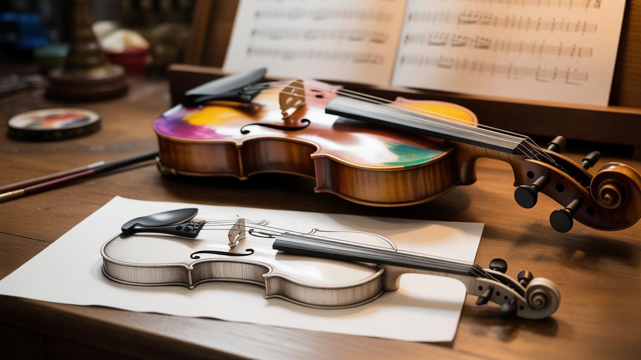 Experimenting with both color and texture might feel awkward at first. But don’t shy away from unexpected combinations—they can deepen the emotional resonance. After all, a violin itself is full of contrasts: smooth curves and rough edges, quiet notes and sharp attacks. Your art can mirror that complexity through how you handle color and texture. What would happen if you tried a cool blue background with warm, grainy paint on the violin body? It’s worth testing. It might just shift your whole perception of the piece.
