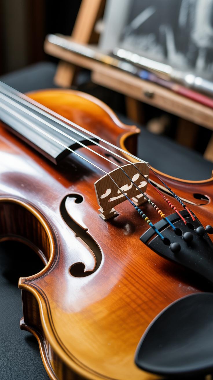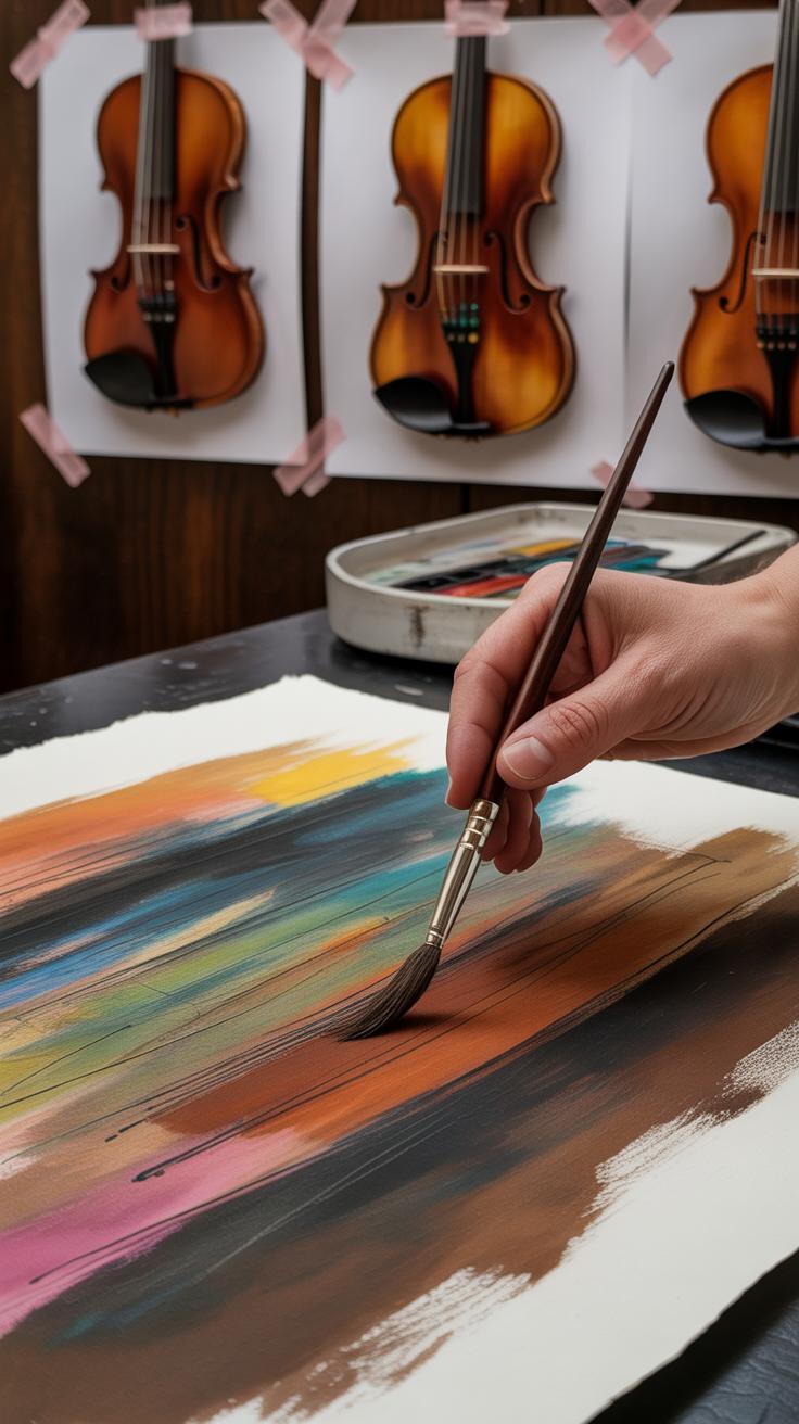 Experimenting with both color and texture might feel awkward at first. But don’t shy away from unexpected combinations—they can deepen the emotional resonance. After all, a violin itself is full of contrasts: smooth curves and rough edges, quiet notes and sharp attacks. Your art can mirror that complexity through how you handle color and texture. What would happen if you tried a cool blue background with warm, grainy paint on the violin body? It’s worth testing. It might just shift your whole perception of the piece.
