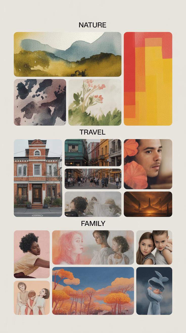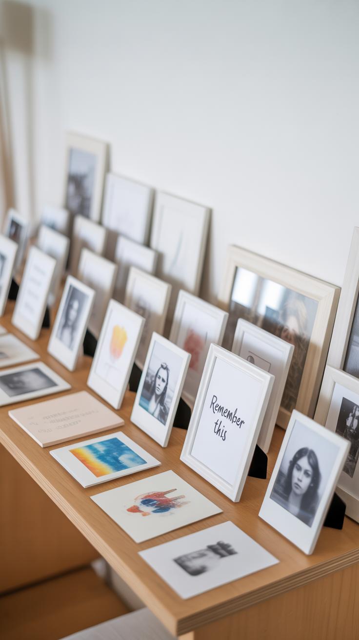 Try mixing in photos or objects that carry memories, things that make you smile or pause. Maybe a seashell from a family beach trip, or a ticket stub from a concert that meant something. These small details spark conversations and invite others into your world.