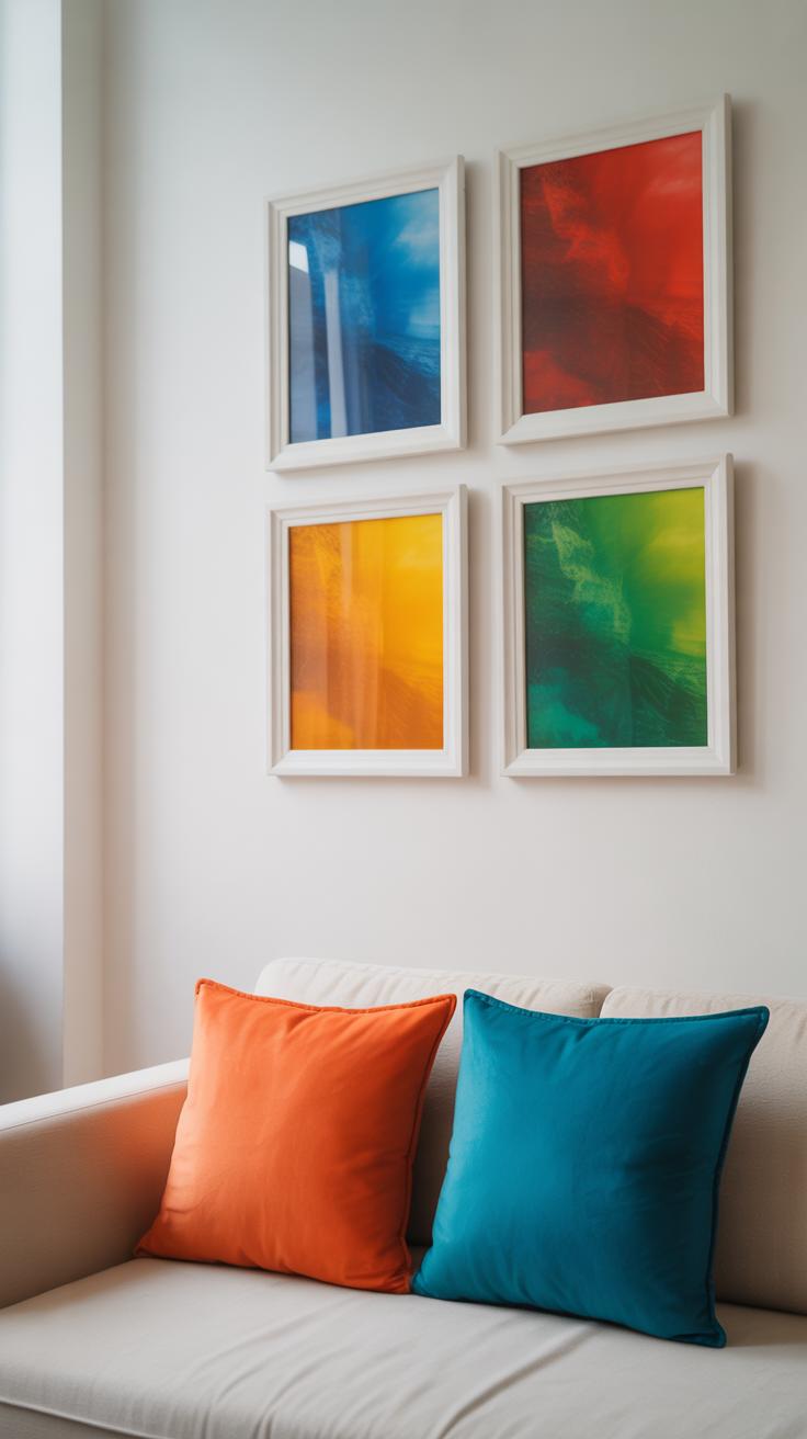 Try pairing a bold piece with a few subtle ones nearby, or use frames of varying shades to create contrast without clutter. Sometimes I’ve found that a single bright frame against a cluster of neutral tones makes a small gallery feel more dynamic.