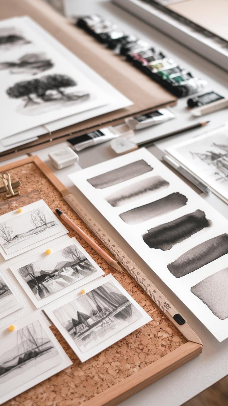 Color and value studies are also useful. Use limited colors or grayscale to test the mood and light in your painting. How do dark and light areas balance? What feelings do the colors create? Planning these details helps keep your painting focused.