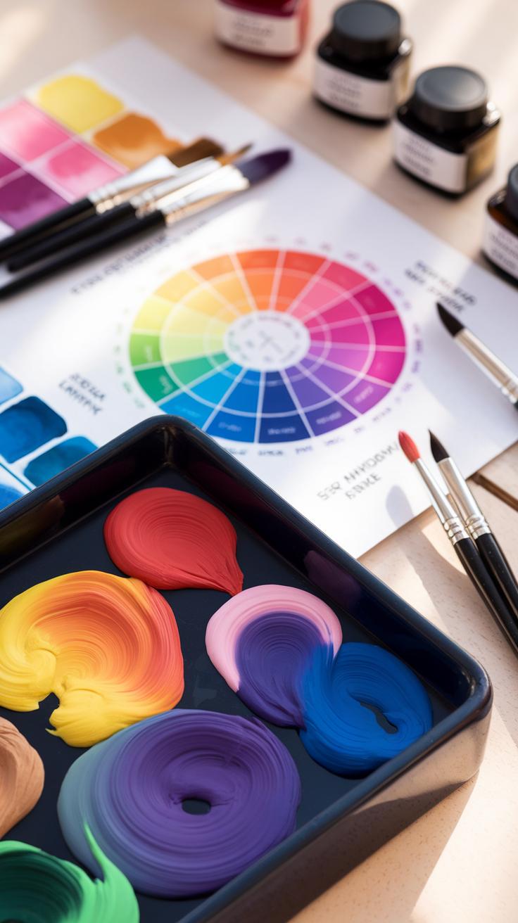 Understanding how to mix watercolor paints is key to creating vibrant artwork. Watercolor pigments come in primary colors: red, blue, and yellow. Mixing these gives you secondary colors like green, orange, and purple. Complementary colors sit opposite each other on the color wheel, such as red and green. When used together, they create strong contrasts that make your painting pop.
