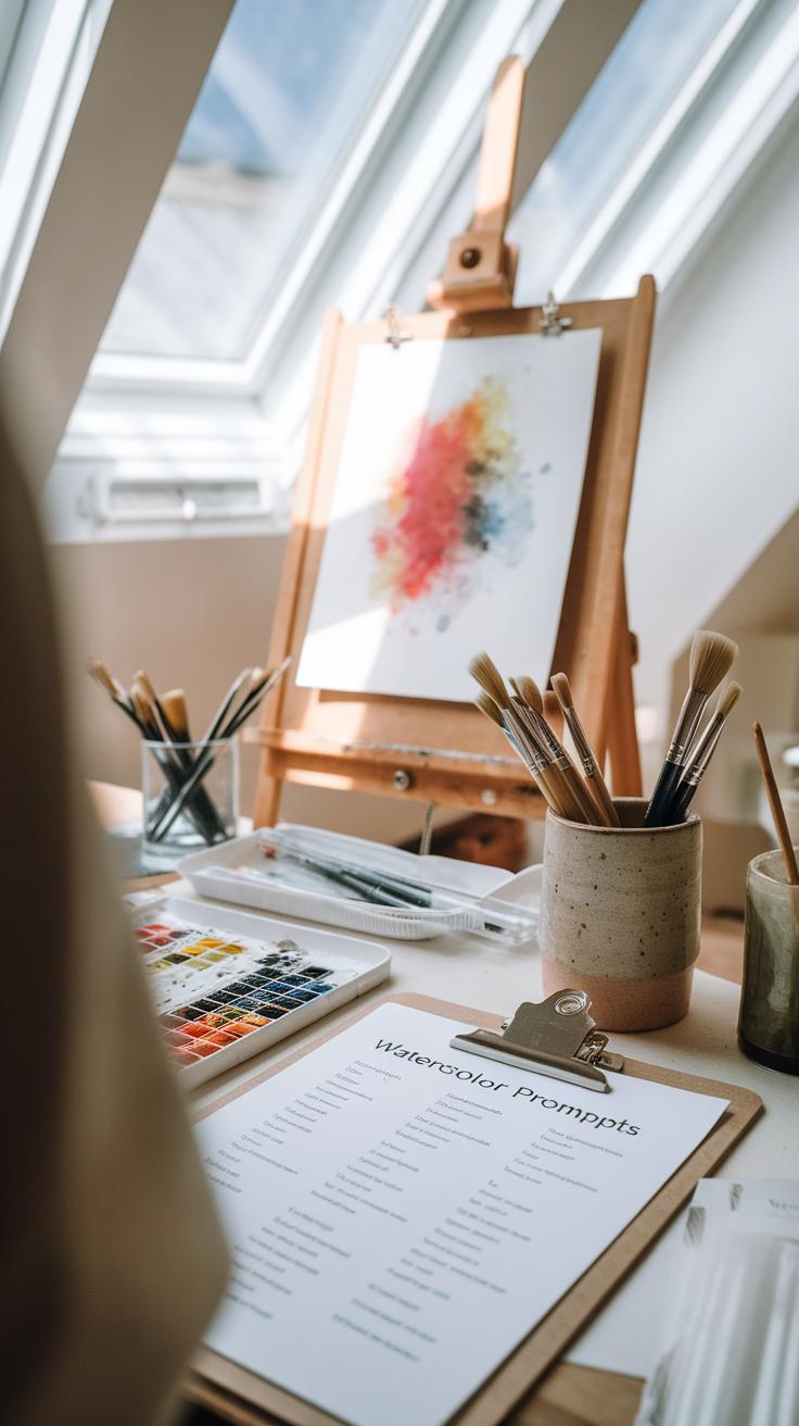 Creating a dedicated space for your watercolor work helps you maintain consistent daily sessions. Choose a spot where you can leave your materials out or easily set up without hassle. Think about the size of your workspace; it should be large enough for your palette, paper, and brushes but not so big you feel overwhelmed. Organize items within arm’s reach to avoid interruptions.