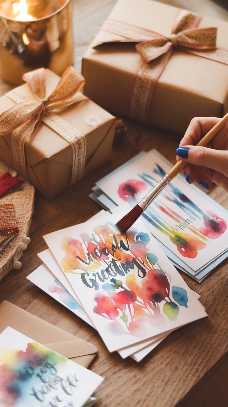 Watercolor cards make thoughtful gifts or personal keepsakes. Use basic shapes like leaves, flowers, or simple patterns as a starting point. These subjects work well on small spaces and highlight blending and layering skills.